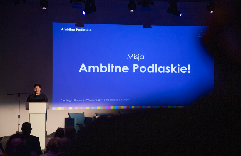 Krótko przestawiła cele strategiczne tego projektu. To dynamiczna gospodarka, zamożni mieszkańcy, partnerski region. Natomiast wizja regionu zawarta jest w haśle „4P”: Podlaskie jest przedsiębiorcze, partnerskie i perspektywiczne. – Nasza misja brzmi: Ambitne Podlaskie! To obietnica i zobowiązanie. Wyzwanie, które będzie od nas wymagać dużego wysiłku – stwierdziła dyrektor Joanna Sarosiek.